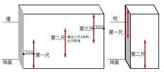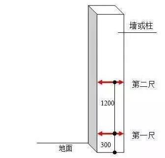 四、垂直度1、指標(biāo)說(shuō)明:反映層高范圍內(nèi)剪力墻、混凝土柱表面垂直的程度。2、測(cè)量工具:2米靠尺3、測(cè)量方法和數(shù)據(jù)記錄:(1)剪力墻:任取長(zhǎng)邊墻的一面作為1個(gè)實(shí)測(cè)區(qū)。累計(jì)實(shí)測(cè)實(shí)量不得少于5個(gè)實(shí)測(cè)區(qū)。(2)當(dāng)墻長(zhǎng)度小于3米時(shí),同一面墻距兩端頭豎向陰陽(yáng)角約30cm位置,分別按以下原則實(shí)測(cè)2次:一是靠尺頂端接觸到上部混凝土頂板位置時(shí)測(cè)1次垂直度,二是靠尺底端接觸到下部地面位置時(shí)測(cè)1次垂直度?;炷翂w洞口一側(cè)為垂直度必測(cè)部位。這2個(gè)實(shí)測(cè)值分別作為判斷該實(shí)測(cè)指標(biāo)合格率的2個(gè)計(jì)算點(diǎn)。(3)當(dāng)墻長(zhǎng)度大于3米時(shí),同一面墻距兩端頭豎向陰陽(yáng)角約30cm和墻中間位置,分別按以下原則實(shí)測(cè)3次:一是靠尺頂端接觸到上部混凝土頂板位置時(shí)測(cè)1次垂直度,二是靠尺底端接觸到下部地面位置時(shí)測(cè)1次垂直度,三是在墻長(zhǎng)度中間位置靠尺基本在高度方向居中時(shí)測(cè)1次垂直度。混凝土墻體洞口一側(cè)為垂直度必測(cè)部位。這3個(gè)實(shí)測(cè)值分別作為判斷該實(shí)測(cè)指標(biāo)合格率的3個(gè)計(jì)算點(diǎn)。(4)混凝土柱:任選混凝土柱四面中的兩面,分別將靠尺頂端接觸到上部混凝土頂板和下部地面位時(shí)各測(cè)1次垂直度。這2個(gè)實(shí)測(cè)值分別作為判斷該實(shí)測(cè)指標(biāo)合格率的2個(gè)計(jì)算點(diǎn)。4、示例: