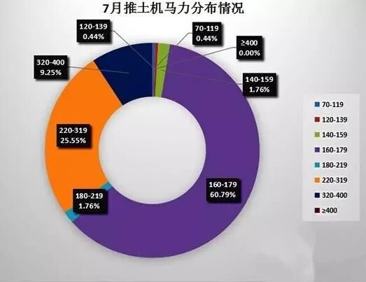 今年7月,全國11家主要推土機生產(chǎn)企業(yè)共銷售各類推土機227臺,環(huán)比6月份的327臺,下降30.58%,成為進入2016年以來,銷量最低的一個月。產(chǎn)品馬力方面,160馬力推土機依舊是銷量最多的品類,共銷售108臺,占總銷量47.58%。220馬力、165馬力、320馬力產(chǎn)品銷量分別為46臺、30臺、21臺,其他馬力產(chǎn)品銷售寥寥無幾。