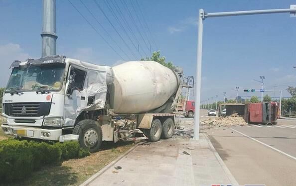 近日,劉某駕駛混凝土攪拌車經(jīng)過十字路口時(shí)闖紅燈,與一輛拉載石塊的大貨車相撞,導(dǎo)致石塊散落一地,兩棵行道樹和一根燈桿被撞倒。