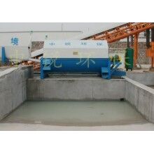該系統(tǒng)主要由:攪拌車(chē)加水清洗裝置,溜槽輸送裝置,砂石漿水分離裝置,和泥漿水后處理裝置組成?;炷凛斔驮O(shè)備清洗后,將殘余混凝土排入溜槽中,在高壓水流沖擊下,經(jīng)溜槽進(jìn)入砂石分離機(jī),在不斷旋轉(zhuǎn)的分離機(jī)作用下,對(duì)混凝土進(jìn)行充分的清洗,同時(shí)將砂、石進(jìn)行分離,分離后的砂、石在導(dǎo)料葉片的作用下背向流動(dòng),再通過(guò)提升式出料口排出分離機(jī),分別堆放。清洗后的漿水從分離機(jī)的底部排出進(jìn)入沉淀池逐級(jí)沉淀后循環(huán)使用或進(jìn)入攪拌池回收利用。進(jìn)入攪拌池(一般情況2個(gè)攪拌池)的漿水為了防止沉淀凝固,需通過(guò)攪拌器的作用,攪拌器的工作為間歇式。分離出水泥漿在連續(xù)的攪拌器作用下,再通過(guò)高壓污水泵輸送到攪拌樓中待生產(chǎn)計(jì)量再利用。整個(gè)控制系統(tǒng)設(shè)有手動(dòng)和自動(dòng)控制,方便控制設(shè)置,整個(gè)系統(tǒng)運(yùn)行可靠,故障率低,維護(hù)量少等特點(diǎn)。