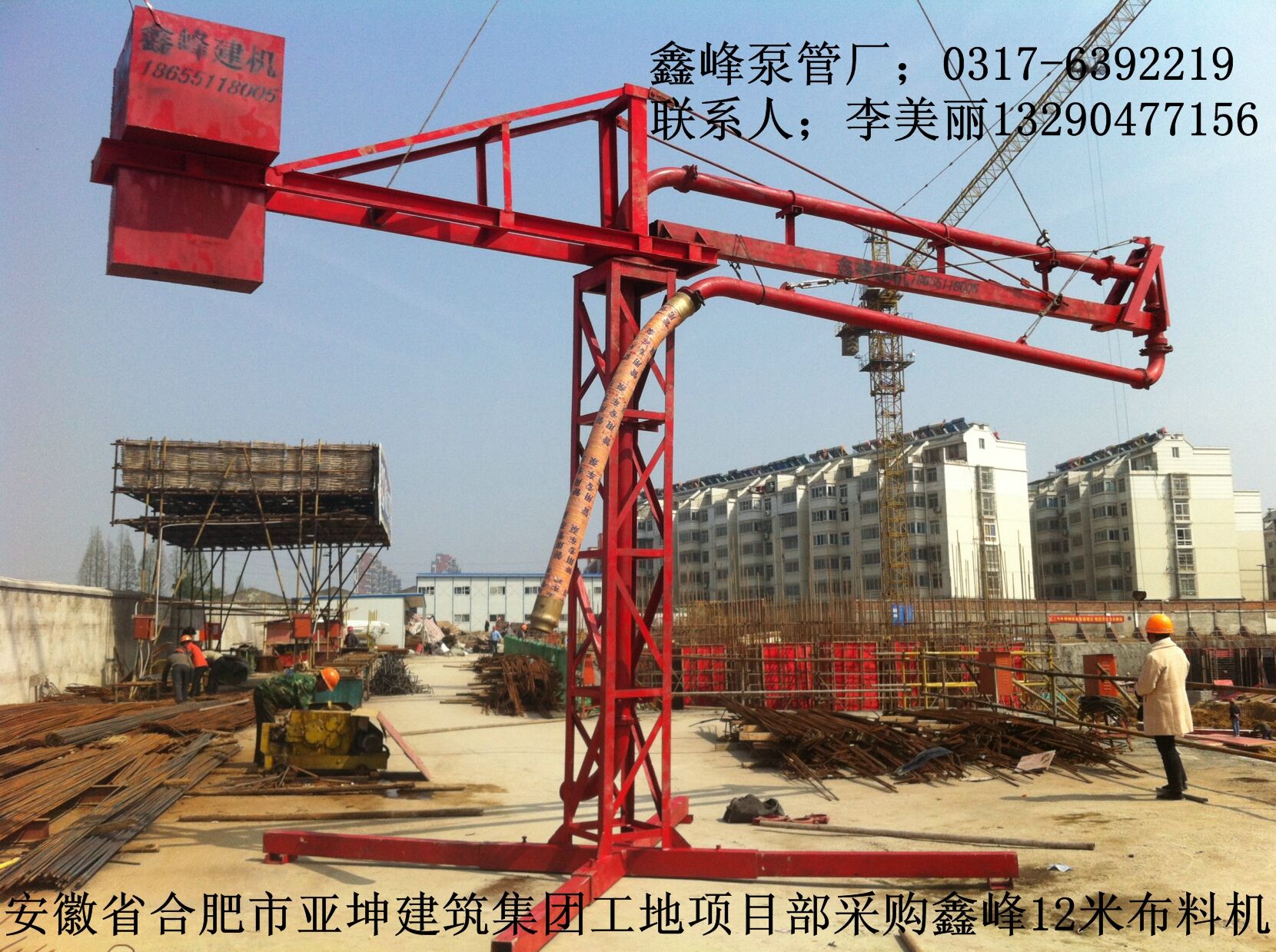 *12米.15米.18米手動布料機(jī)。 該布料桿采用全回轉(zhuǎn)壁架式布料結(jié)構(gòu),配用ф133輸送管,整機(jī)手動操作。具有結(jié)構(gòu)穩(wěn)定可靠,轉(zhuǎn)動輕便靈活,360°全方位正反向回轉(zhuǎn),回轉(zhuǎn)半徑可任意調(diào)節(jié),適當(dāng)高度的塔身,只需輕松拉動繩索,即可任意改變布料方位,因此它具有高效可靠、經(jīng)濟(jì)實(shí)用特點(diǎn)。