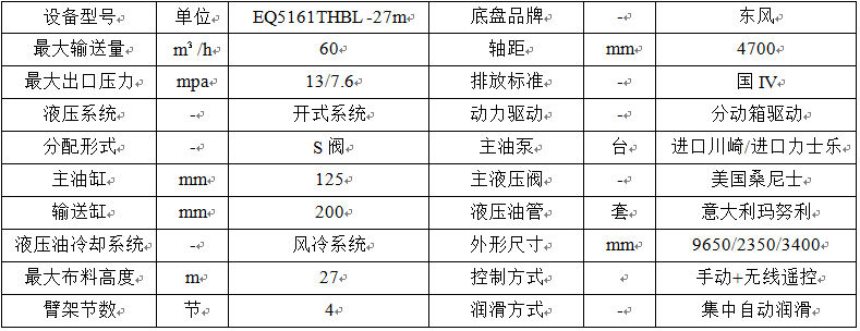 攪拌一體臂架泵車基本配置表