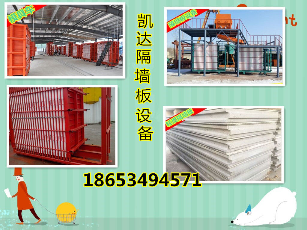 新型輕質(zhì)隔墻板設備由底盤總成、前立架、后立架、后壓板、拉桿、隔板、邊模、底模、轉(zhuǎn)換系統(tǒng)、電控系統(tǒng)組成,是目前市面上生產(chǎn)輕質(zhì)隔墻板先進通用實惠的生產(chǎn)設備(市面上現(xiàn)有未經(jīng)本公司授權(quán)的仿制產(chǎn)品),輕質(zhì)隔墻板設備【防火】復合內(nèi)墻墻板機出廠價低目前本公司在國內(nèi)已扶持合作建廠30余家,國外建廠20余家,設備的主要特征是:操作靈活、投資少、見效快、產(chǎn)量高。