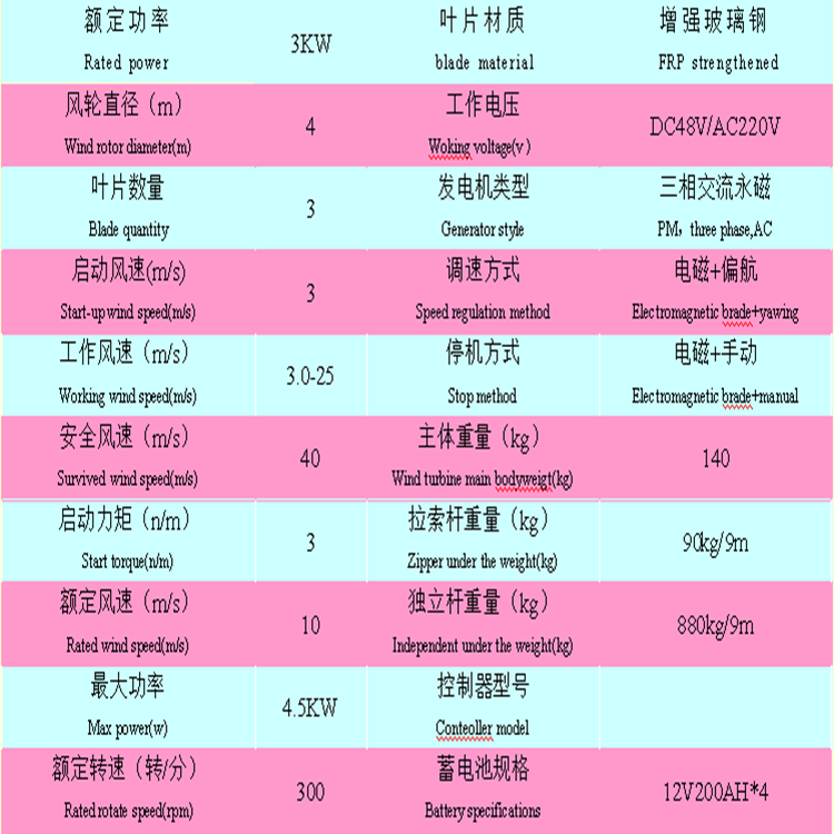 sc-3kW風(fēng)力發(fā)電機(jī)技術(shù)參數(shù)