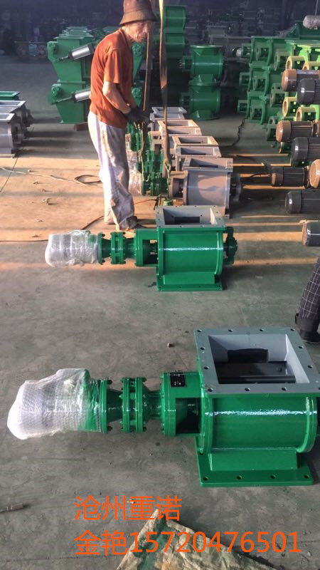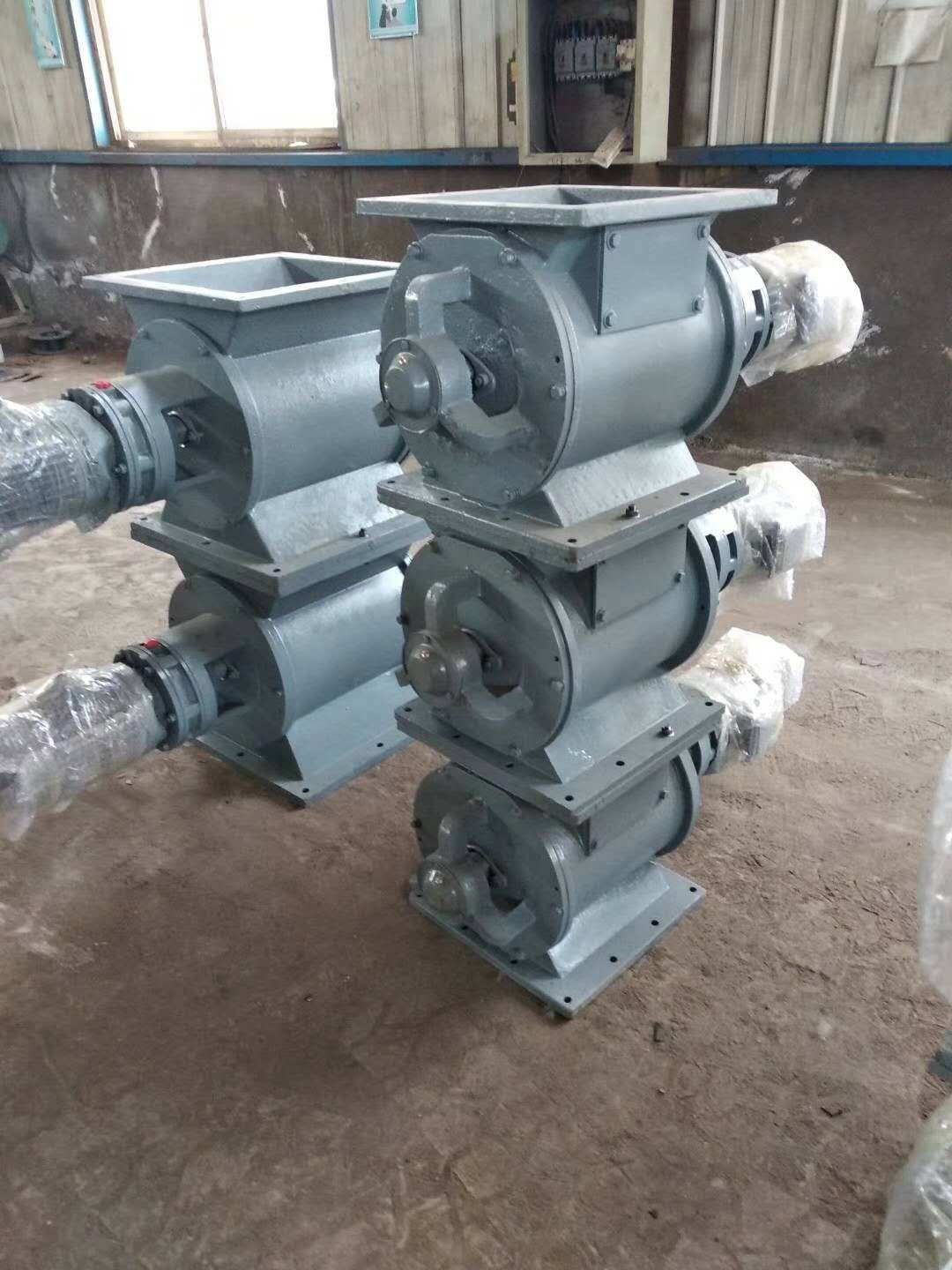 工作原理:星型卸料器工作時,粉塵靠重力落入,充滿上面和側(cè)面的星形葉片空格。葉片轉(zhuǎn)子由電動機通過減速機轉(zhuǎn)動軸帶動,葉輪轉(zhuǎn)到下部粉塵靠自重卸下。這種卸塵器一般都安裝在除塵器灰斗下部,為保證連接處的嚴(yán)密不漏風(fēng),在回轉(zhuǎn)卸料器的上部應(yīng)經(jīng)常保持(儲存)一定高度的粉塵。因為葉輪轉(zhuǎn)動時,卸完粉塵后葉輪轉(zhuǎn)上的那一面經(jīng)常是沒有粉塵的,所以容易使空氣漏入。為了保持一定高度的灰柱,而且不致卸空,*在灰斗內(nèi)裝設(shè)料位信號設(shè)施,并與卸塵閥的電動機建立連鎖。