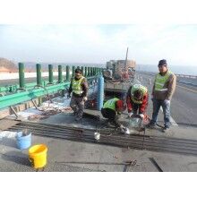 日本在修補(bǔ)伸縮縫時(shí)采用樹脂混凝土、超早強(qiáng)水泥,這種超早強(qiáng)復(fù)合材料養(yǎng)生時(shí)間較短,國(guó)內(nèi)這幾年來也在使用新型超早強(qiáng)復(fù)合水泥,自加水后2小時(shí)恢復(fù)交通。