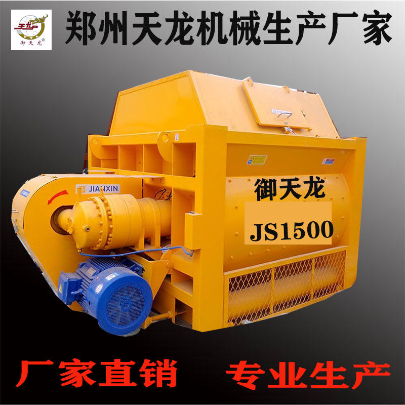 JS1500型混凝土攪拌機每次出料為1500公升,是鄭州天龍成熟的產(chǎn)品之一,在國內(nèi)首屈一指,該型號攪拌機攪拌能力強,工作效率高,既可獨立作業(yè),也可用作HZS50HZS60攪拌站的主機,與配料機組成簡易的5060型混凝土攪拌站。