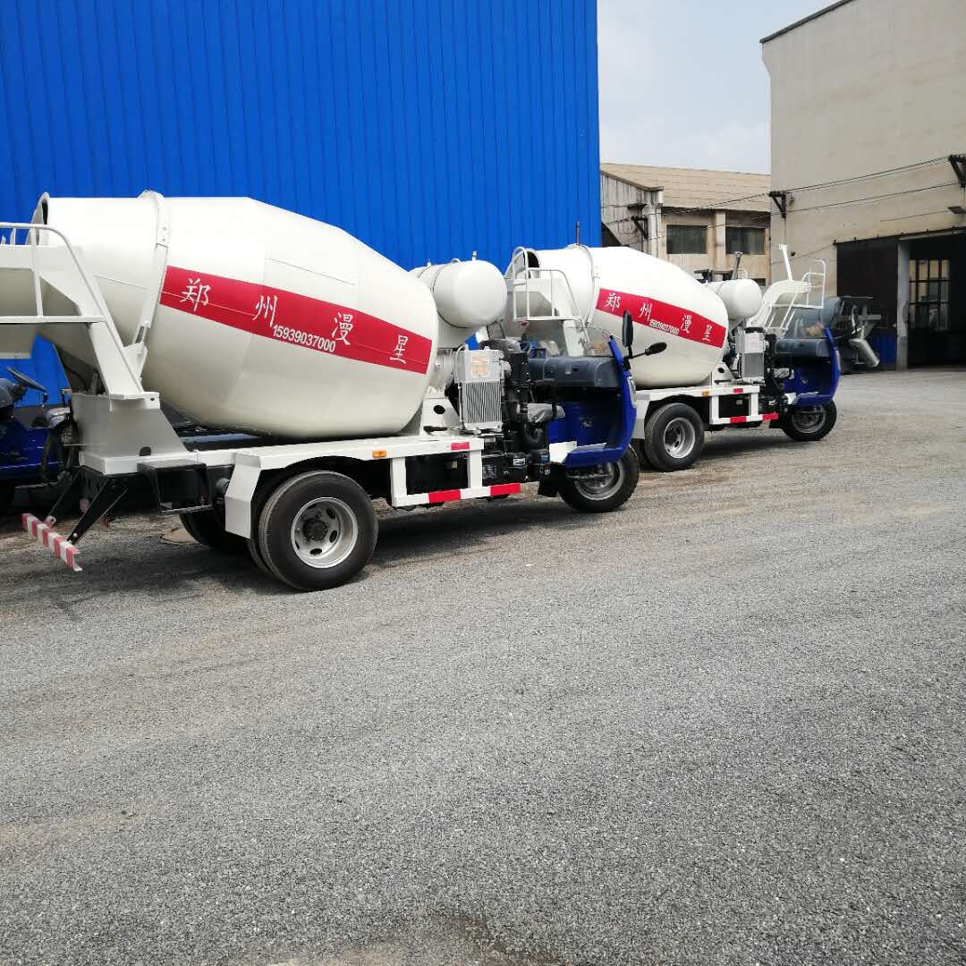 五征三輪1.8方攪拌車的主要參數(shù)配置: 萊動(dòng)30馬力單缸柴油機(jī),后825-16鋼絲胎,前600-16輪胎,氣剎,斷氣剎,4檔高低速,方向助力 用農(nóng)用三輪車改裝攪拌罐車可以利用三輪車單缸發(fā)動(dòng)機(jī)的特點(diǎn)解決攪拌系統(tǒng)取力問題,國內(nèi)小型發(fā)動(dòng)機(jī) 沒有專門供混凝土攪拌車全功率取力的發(fā)動(dòng)機(jī),用單缸柴油機(jī)可以在皮帶輪上分出皮帶代替?zhèn)鲃?dòng)軸帶動(dòng) 攪拌罐液壓系統(tǒng)。用發(fā)動(dòng)機(jī)取力會比變速箱取力讓攪拌罐轉(zhuǎn)速更穩(wěn)定,發(fā)動(dòng)機(jī)取力不會發(fā)生離合器工作 時(shí)攪拌罐液壓系統(tǒng)不工作的問題,也不會影響變速箱齒輪組工作導(dǎo)致掛檔摘檔不順暢。