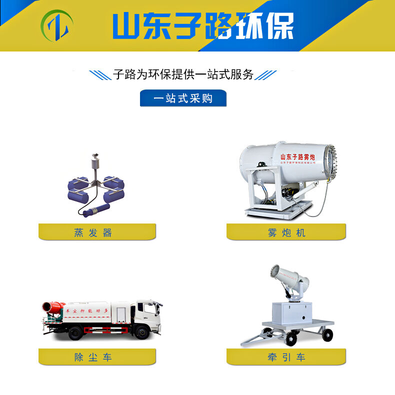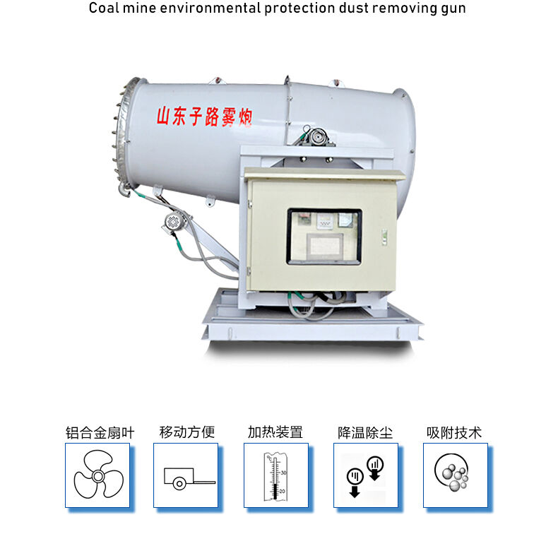 子路環(huán)??萍加邢薰疽豢钔ㄟ^高壓風(fēng)機(jī)將儲(chǔ)存的水壓縮成灰塵大小,在利用不銹鋼噴嘴部位將水霧化吹向高空凈化空氣的一種新型環(huán)保除塵產(chǎn)品。這款產(chǎn)品名字叫高射程霧炮機(jī),