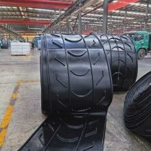 特征:帶面上有呈半扇形(或1/4圓型)花紋。當(dāng)膠帶成槽時(shí)花紋合擾成扇形(或半圓形)、屬高花紋類。 用途:適用于≤60度大傾角輸送粉、顆粒及塊狀物料。 草坪花紋、魚(yú)骨花紋、菱形格花紋、十字花紋、網(wǎng)眼花紋、倒三角花紋、馬蹄花紋、鋸齒花紋、小圓點(diǎn)花紋、鉆石花紋、蛇皮花紋、布紋、大圓臺(tái)花紋、波浪花紋、搓板花紋、一字型花紋、細(xì)直條花紋、高爾夫花紋、大方格花紋、亞光花紋、粗質(zhì)地花紋、格子花紋等以適用于工業(yè)領(lǐng)域中不同工作環(huán)境不同性能要求之需。