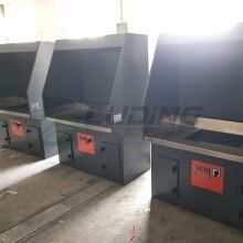 2、該打磨除塵工作臺采用我公司自己的收吸式除塵方式,且在后部抽風(fēng)口和臺面抽風(fēng)口都安裝有風(fēng)閥??梢愿鶕?jù)工件的大小或打磨位置的不同關(guān)閉相應(yīng)的風(fēng)閥.以提高其它部位的風(fēng)量來達(dá)到提高除塵效果。該種方式很大地節(jié)省了用風(fēng)量.降低了運行費用。