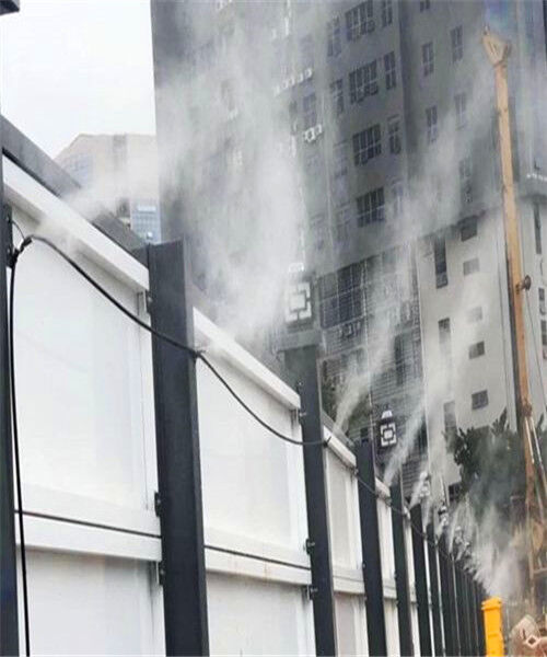 1、圍擋上管路鋪設(shè):水路總開關(guān)設(shè)置在起點,主管道設(shè)置成4米,需用三通連接兩端水管,上方插入一段噴霧管,安裝一個直通將噴嘴與管路相連接。(可根據(jù)實際需要設(shè)置噴霧管之間的距離)水管由卡扣和螺絲固定在圍擋上。