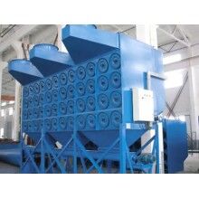 在正常運行時,如:重力、慣性力、碰撞、靜電吸附,篩濾作用等。含塵空氣由頂部入口進入濾筒式除塵器,較大的粉塵顆粒因截面積增大,風速下降而提高直接沉降,較小的煙塵粉塵顆粒通過濾筒。粉塵被捕集在過濾筒外邊,清潔空氣則經(jīng)由濾筒中心進入清潔空氣室,再經(jīng)出口由引風機排出。隨著過濾不斷進行,濾筒表面的煙塵粉塵越積越多,阻力不斷升高,及至濾筒清灰時,固態(tài)控制將操縱電磁閥以打開一個空氣隔膜閥,于是高壓空氣便直接沖入所選濾筒中心,把捕集在濾件表面上的粉塵吹掃一清,使濾筒再生。粉塵則隨主氣流所趨,并在重力的作用下向下落入塵斗中。周而復始,連續(xù)過濾,使設(shè)備連續(xù)進行得到保障。