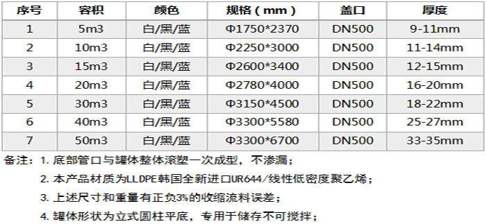 特點:所用材質(zhì)為韓國進(jìn)口聚乙烯(PE)滾塑原料,儲罐一次成型,內(nèi)外光滑,具有良好的衛(wèi)生性與抗紫外線能力,耐酸堿、耐腐蝕、易清洗、不易老化。