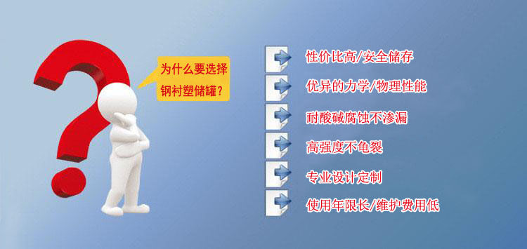 鋼襯塑儲(chǔ)罐由于其獨(dú)特的滾塑工藝、產(chǎn)品整體結(jié)構(gòu)和材料優(yōu)異性能,具有整體性好、強(qiáng)度高、無(wú)焊縫、不滲漏、抗沖擊、韌性好、重量輕、壽命長(zhǎng)、耐酸堿、耐有機(jī)溶媒、符合衛(wèi)生標(biāo)準(zhǔn)、價(jià)格低廉、規(guī)格品種多等特點(diǎn)。尤其耐腐蝕、長(zhǎng)壽命和大規(guī)格品種有非常大的優(yōu)勢(shì),是貯存和運(yùn)輸各類(lèi)化工液體半固體的理想產(chǎn)品。其性能大大超過(guò)了傳統(tǒng)的玻璃鋼、陶瓷、橡膠、焊接塑料等材料制作的防腐儲(chǔ)罐。