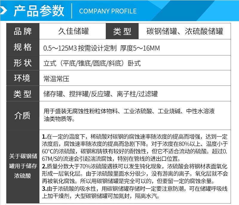 產(chǎn)品:碳鋼儲(chǔ)罐、濃硫酸儲(chǔ)罐