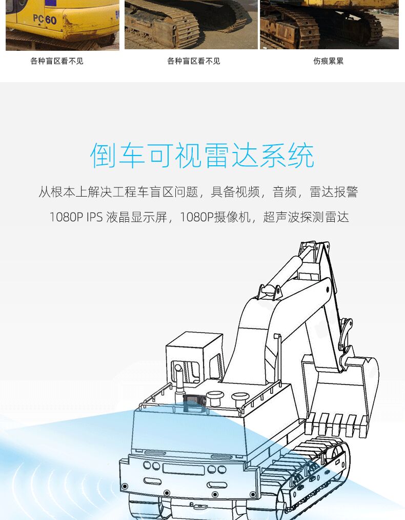 挖掘機倒車雷達 高清夜視紅外影像報警提示系統