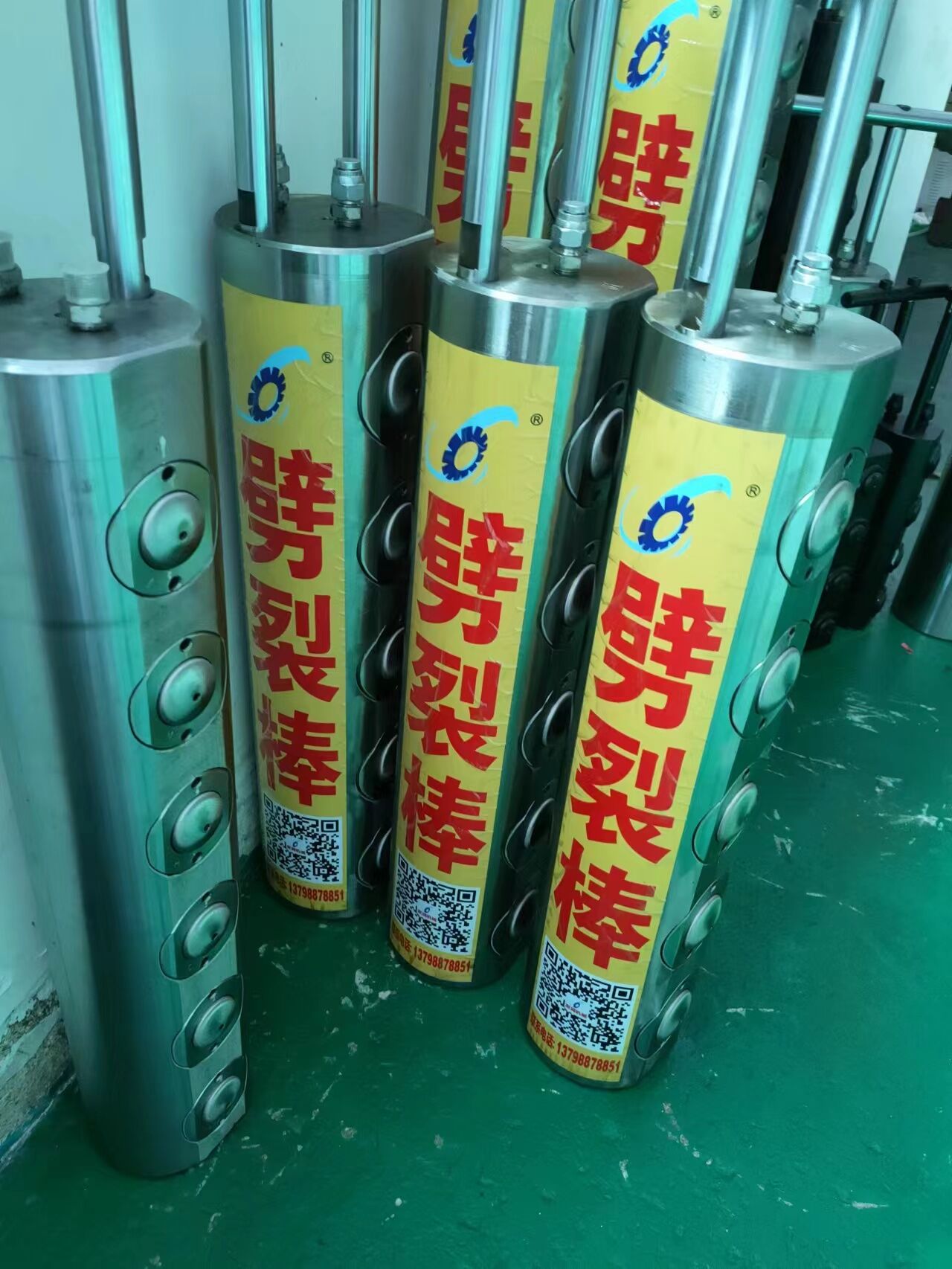 液壓柱塞式棒原理及組成液壓柱塞式棒主要由液壓泵站和劈裂器(棒)兩部分組成。120-150MP超高壓油泵站輸出的高壓油驅(qū)動(dòng)油缸產(chǎn)生巨大推動(dòng)力(1300-1500噸),并推動(dòng)劈裂棒上的活動(dòng)活塞向外運(yùn)動(dòng),從而使活塞產(chǎn)生的作用力作用于被體孔壁,巖石在巨大的作用力下按預(yù)定方向裂開。
