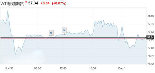盤中一度漲至57.98美元,也曾度跌至每桶56.82美元;周四到期的1月布倫特原油上漲46美分,收于63.57美元;交易更活躍的2月合約上漲了10美分,收于62.63美元。