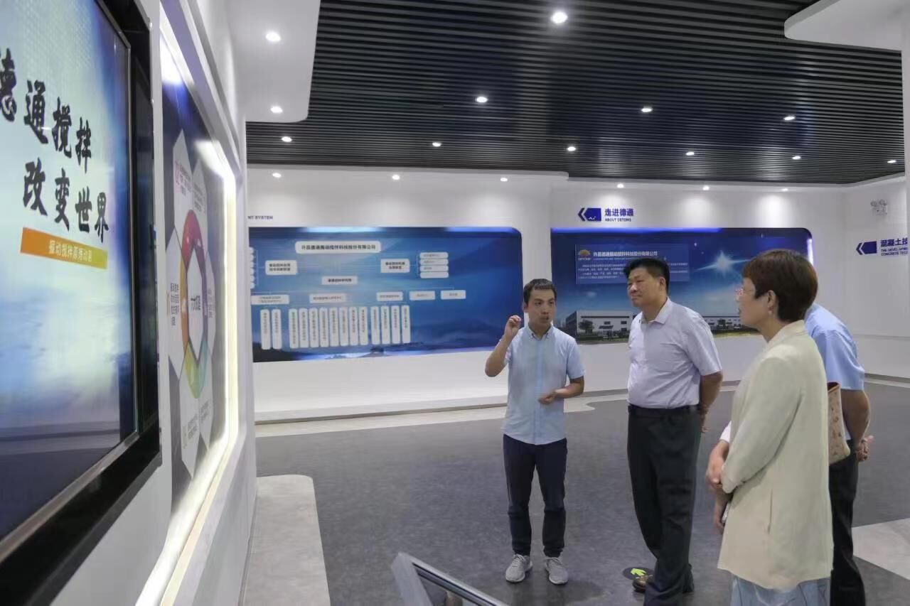 公司副總經(jīng)理孔鮮寧等陪同符忠軒會長一行參觀德通多媒體展廳,匯報(bào)振動攪拌技術(shù)研發(fā)及應(yīng)用成果。